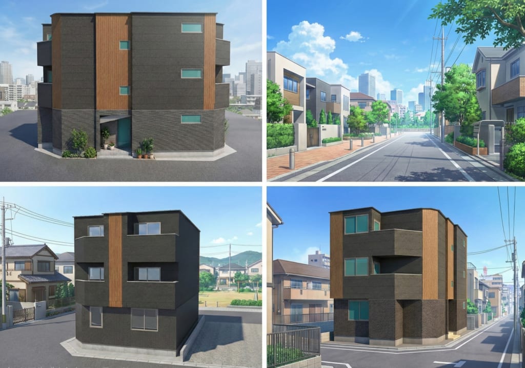 6棟目のサイディングについては、立面図をもとにAIでパースを作成し、そのパースをベースに、よりイメージに近いサイディングを工務店に選定してもらうという進め方をしました。